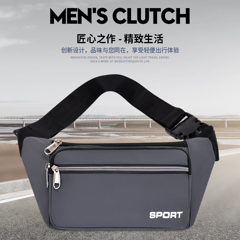 新型オックスフォード布カジュアルウエストバッグ薄い肌着ランニングスポーツ男性携帯バッグ三層ファスナーウエストバッグ男性
