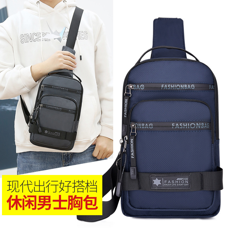 新型胸包男性シングル肩斜め包カジュアルオックスフォード布胸前斜めリュックサック潮包アウトドアスポーツ胸包男性