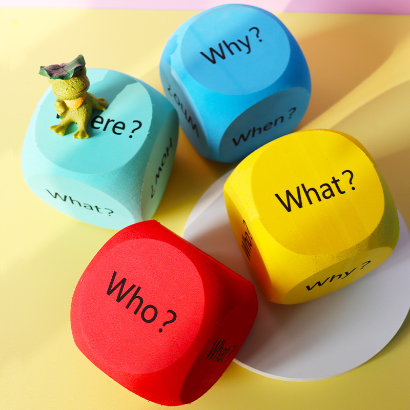 サイコロは英語の疑問語を教えます。子供の教室の色のおもちゃは小学生です。