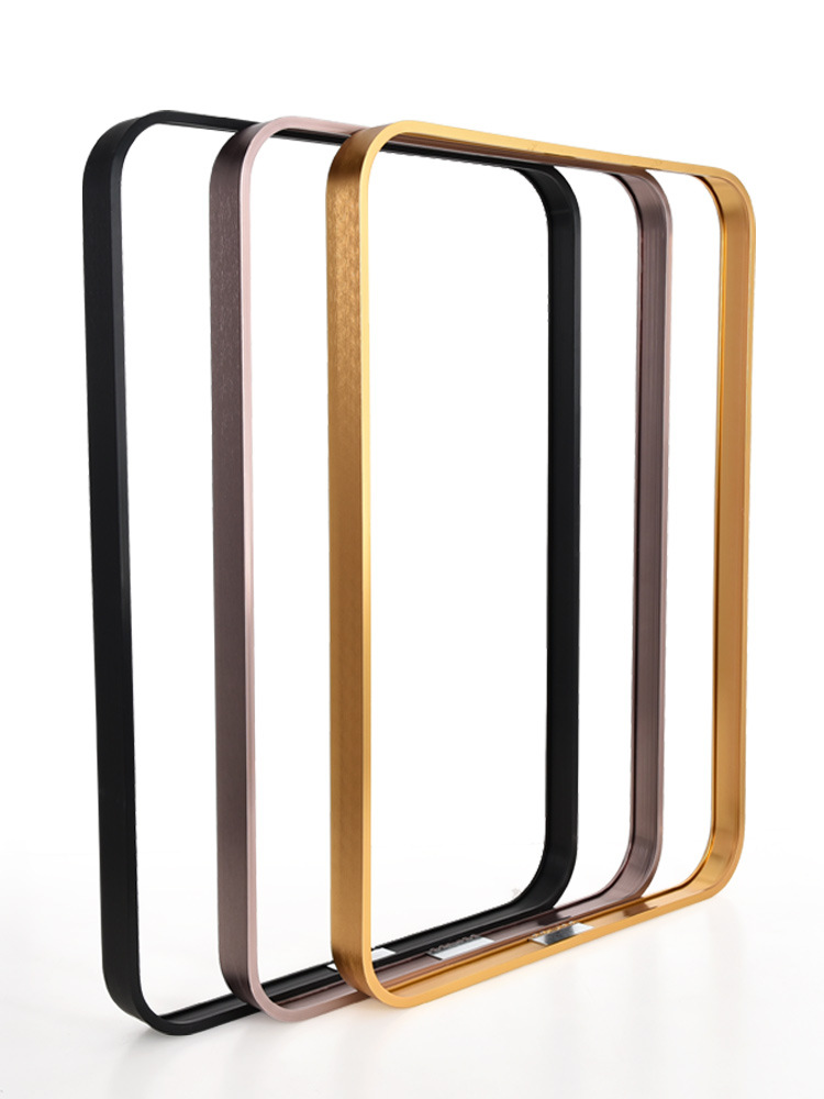 アルミ合金の角の四角形の空枠の金属は線を引いてシンプルな装飾の額縁の形の鏡のガラスの外枠を飾ります。