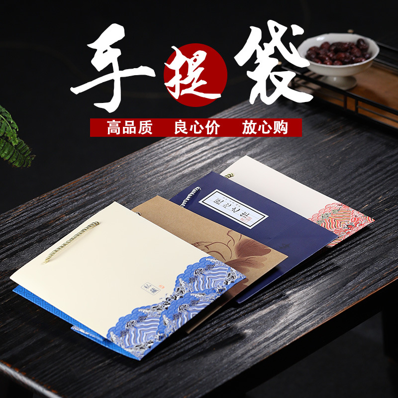 プレゼントの手提げ袋の白い紙の牛皮の紙袋の紫砂壺はプレゼントの袋のお茶の服装の白酒の厚い袋を建てます。