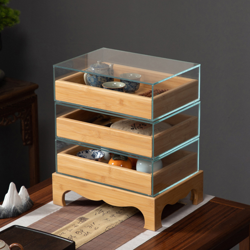 デスクトップ茶器収納ボックス湯飲み茶器棚強化ガラス収納棚文遊び紫砂壺収納整理棚