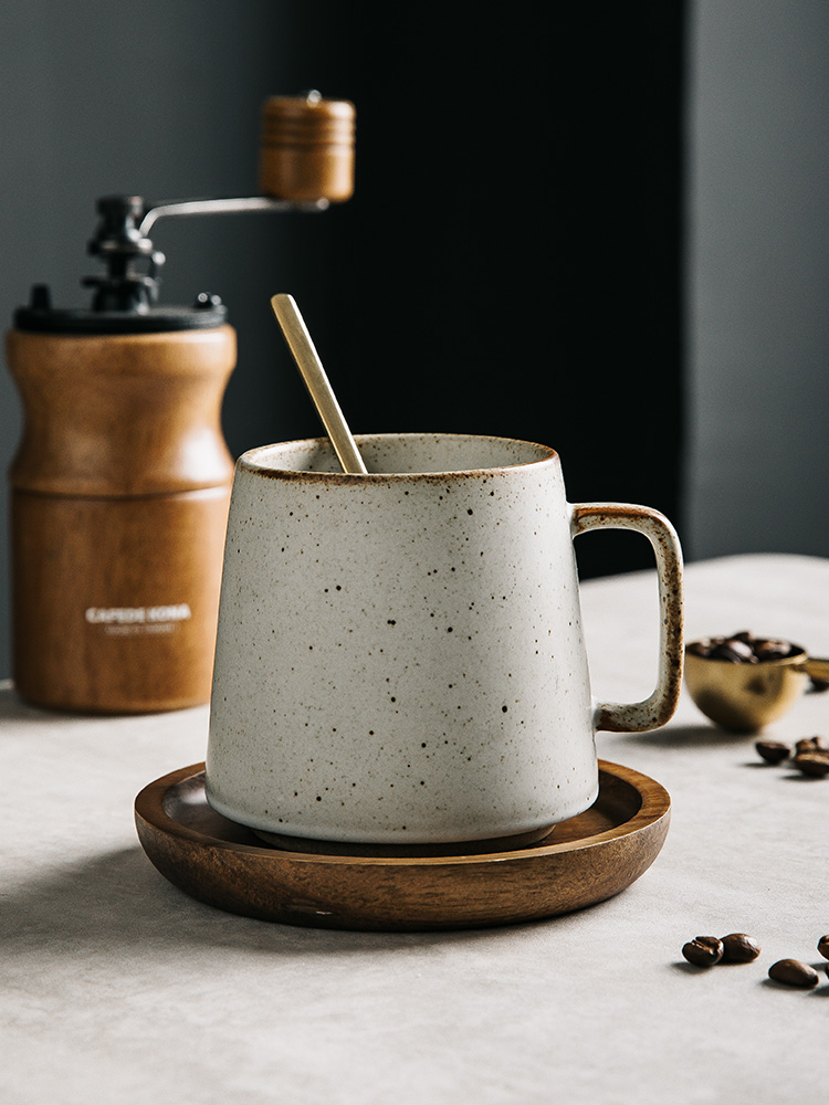 セラミックレトロ高価値マグ女性セラミックマグオフィスウォーターカップコーヒーカップスプーン付き家庭用ティーカップ