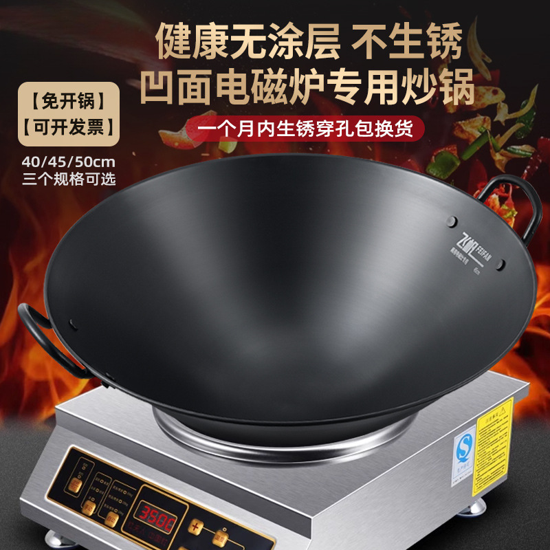 凹面電磁ストーブ炒め鍋ホテル料理人鉄鍋ホテルコーティングなし商用古い両耳炒め鍋