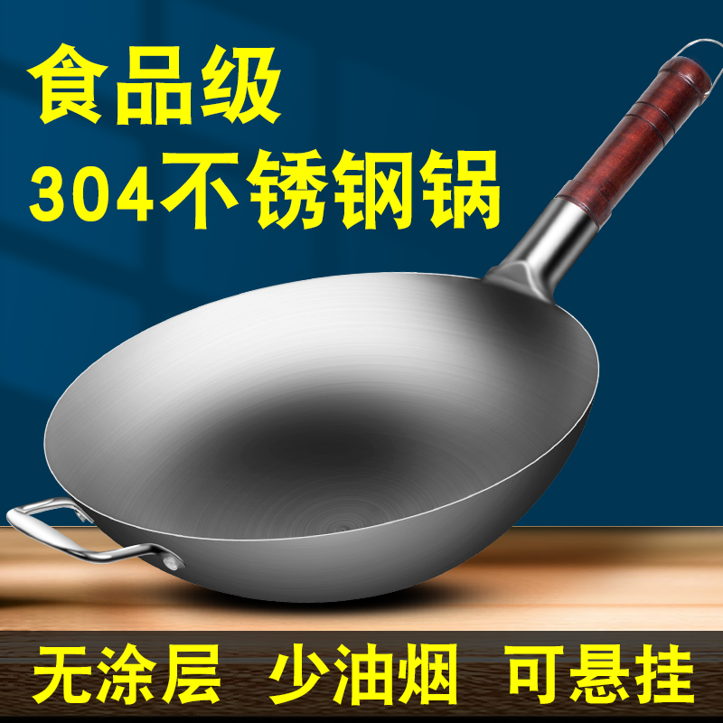 304 ステンレス鋼中華鍋昔ながらの丸底中華鍋油煙なしノンスティック中華鍋家庭用未塗装中華鍋ガスストーブ