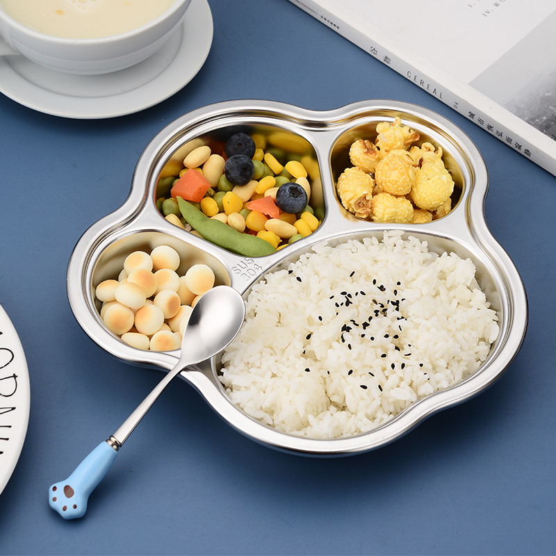 食品グレード 304 ステンレス鋼漫画かわいい子供用分割猫の爪ディナープレート幼稚園ベビー落下防止食事ボウル