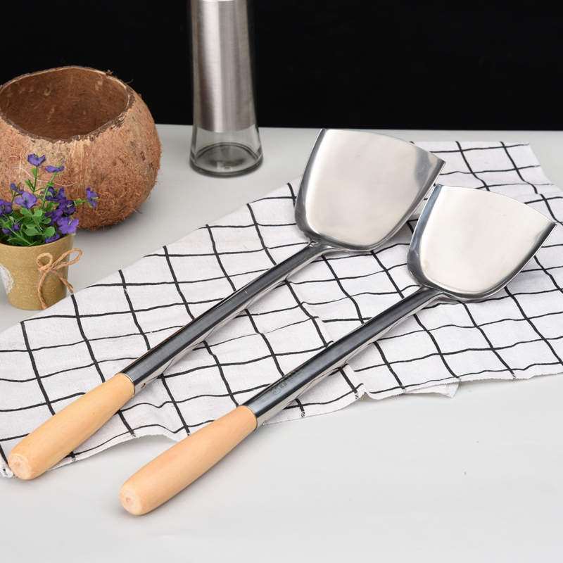 厚みのあるステンレス鋼のスパチュラ、調理用スパチュラ、家庭用キッチン火傷防止フライパンスプーン、昔ながらの長いハンドル、調理用の大きなスパチュラ