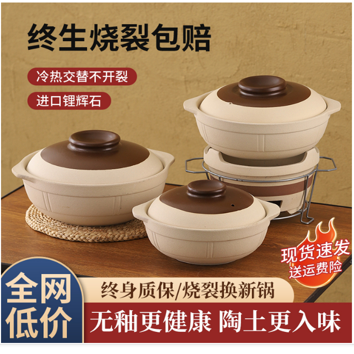 昔ながらの土鍋、家庭用土鍋、ガスストーブ、小型土鍋、陶器鍋、高温耐性、乾燥して割れない