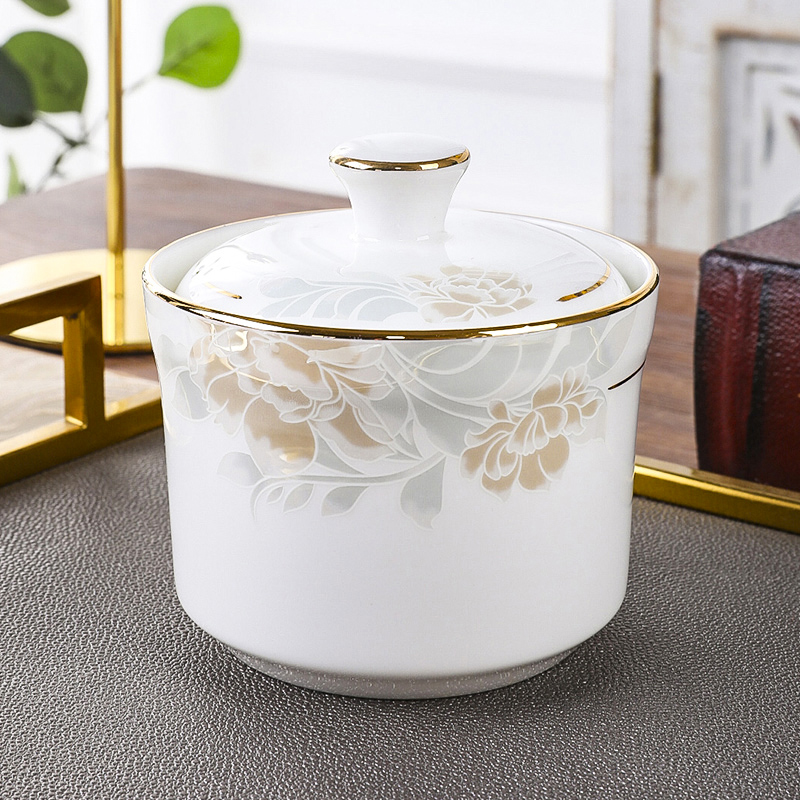 シチューポット、耐水シチューポット、家庭用金縁ボーンチャイナツバメの巣スープカップ、小カップ、陶器健康カップ、1人用ミニカップ蓋