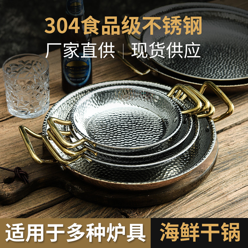 厚みのある 304 ステンレス鋼スペインパエリアポット両耳ポットロブスタープレートコーティングされていないフライパン家庭用パン