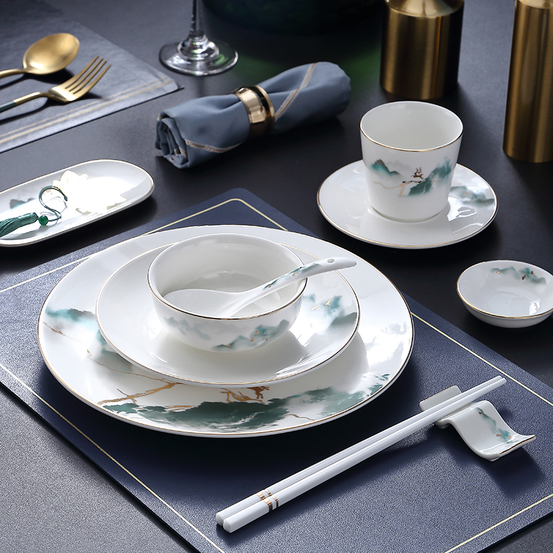 ホテルクラブテーブル食器セット中国風のボウルとプレートレストランボーンチャイナカスタム印刷
