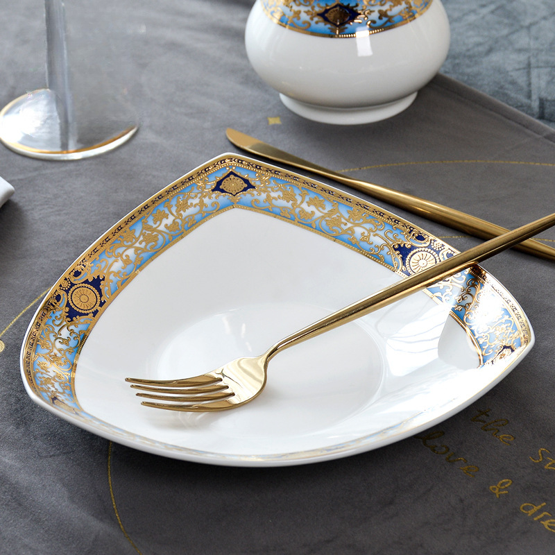 三角プレート家庭用ライト高級ボーンチャイナレリーフ食器プレート 8inch 特殊形状プレートヨーロッパ深皿スーププレートディナープレート