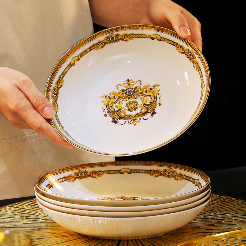 家庭用プレート 10枚セット ヨーロピアンスタイル 8inchボーンチャイナ ディッシュプレート ゴールドリム ライスプレート ディッシュプレート 電子レンジ対応 食器プレート
