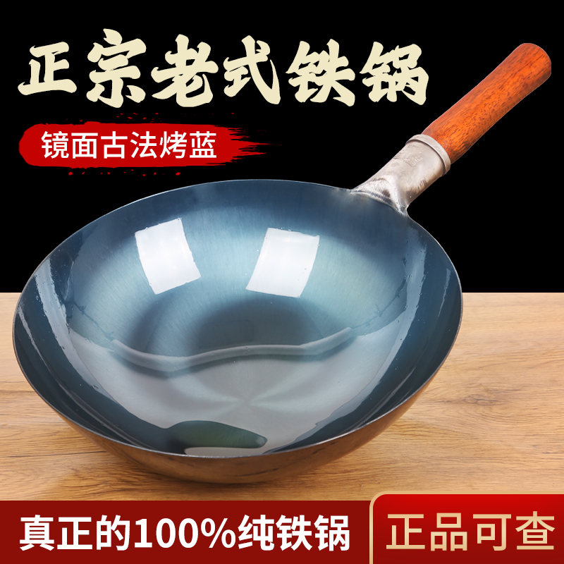 鉄鍋 中国古式家庭用中華鍋 無塗装 シェフ推奨 鍛鉄丸底馬スプーン ガスコンロ対応