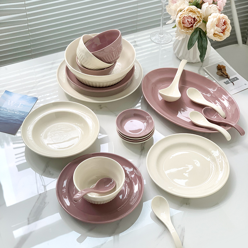 食器セット、家庭用セラミックボウルとプレートの組み合わせ、クリーム風食器、ボウルセット、野菜皿、魚皿
