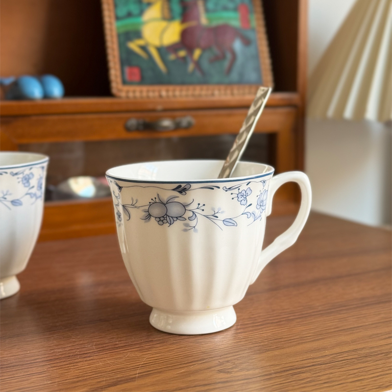 釉下花渓ボーンチャイナカップ縦模様コーヒーカップレトロウォーターカップミルクティーカップアフタヌーンティー電子レンジ対応セラミック
