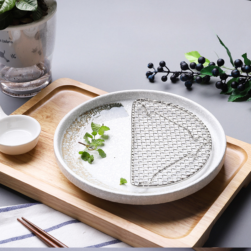 日本のセラミック食器クリエイティブ描画グリーン家庭用ラウンドディッシュプレートホテル日本レトロフライドポークカツレツディープディッシュプレート