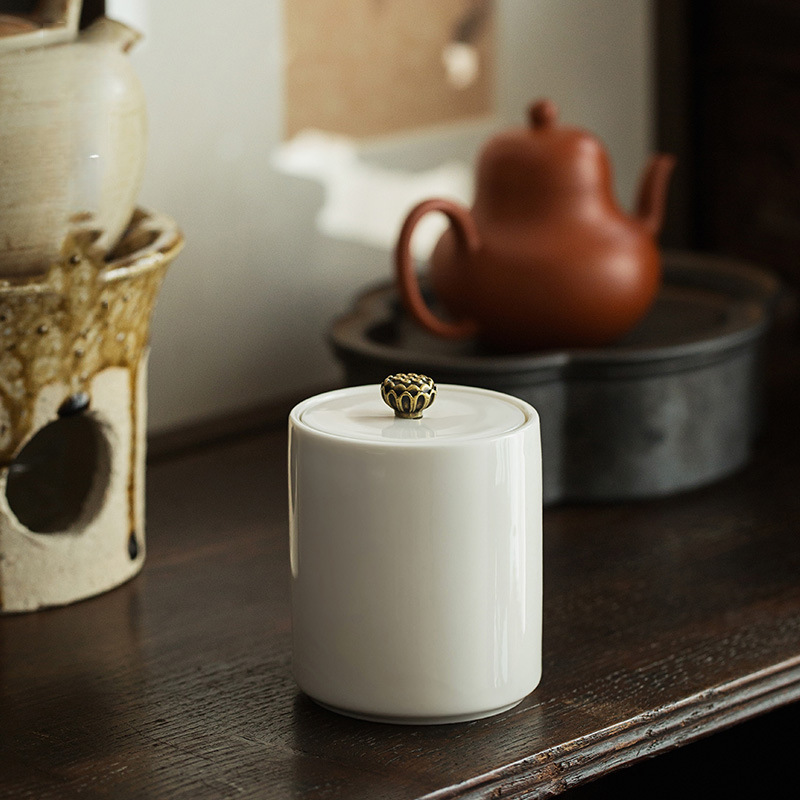 白磁ティージャー、茶缶、陶器密封缶、小型家庭用茶蔵、携帯用茶器、小型茶缶