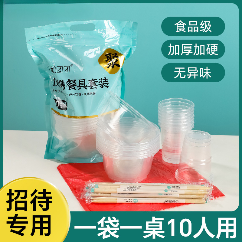使い捨て食器4点セット、食品グレードの航空結婚式、ホテル宴会、ピクニック、独立した食器セット
