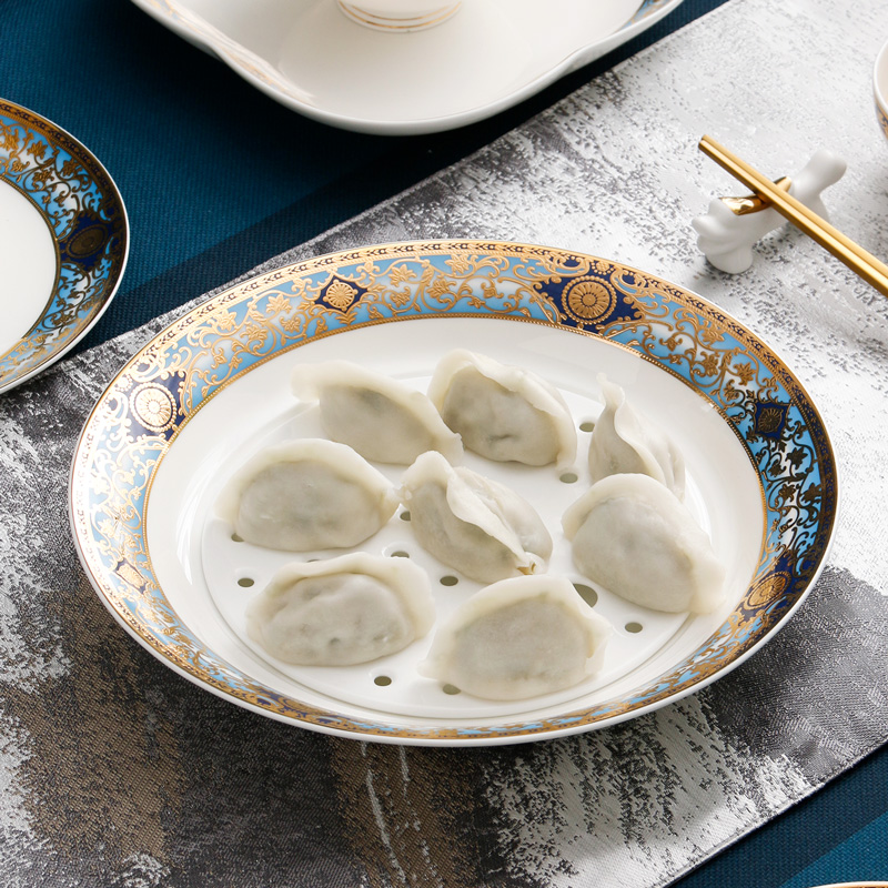 軽量高級餃子プレート家庭用二層排水プレート大型 10inch 骨磁器プレートエンボス食器ディナープレート餃子プレート