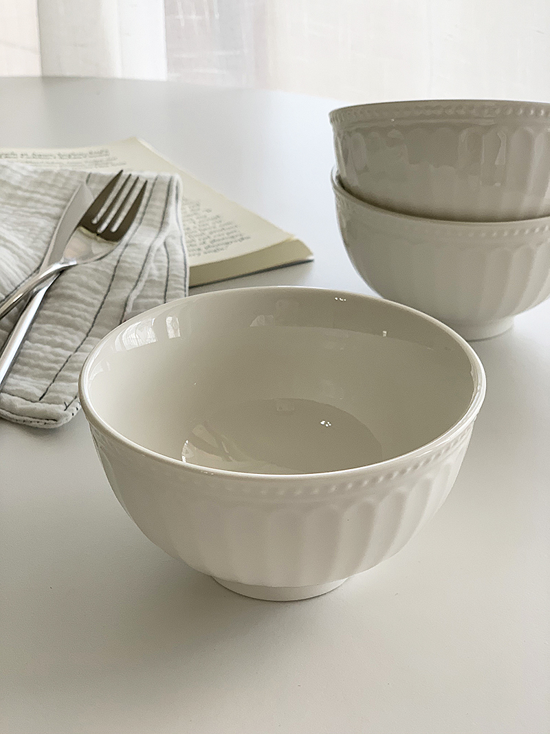 景徳鎮純白家庭用小さなスープボウルボーンチャイナレリーフ韓国麺ボウルレースライスボウルセラミック食べる大きなボウル