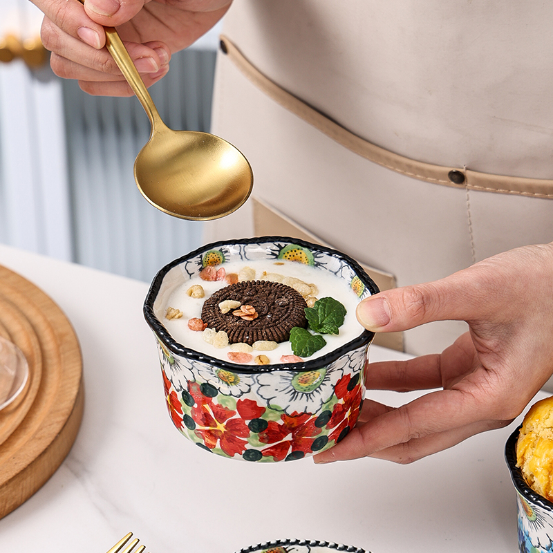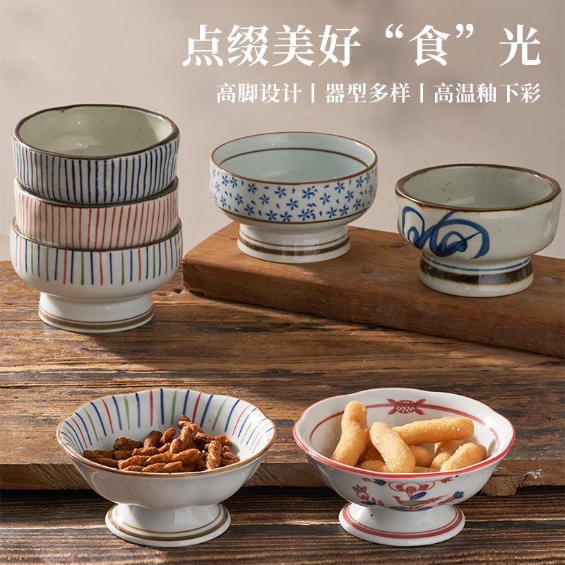 三分焼日本式陶磁器高足スイーツ砂糖ボウル高顔値アイスクリームミルクヨーグルトネット赤氷サラダボウル