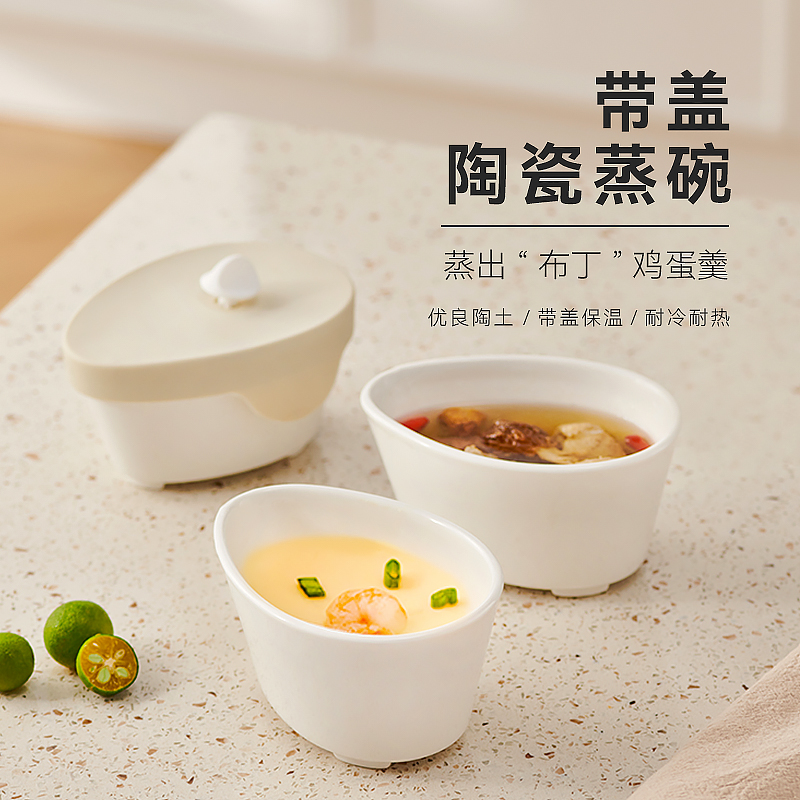 蓋付き家庭用セラミック蒸し卵ボウル、防水煮込み卵、食品グレードの蒸し野菜、肉、蒸し飯、煮込み、蒸し卵ボウル