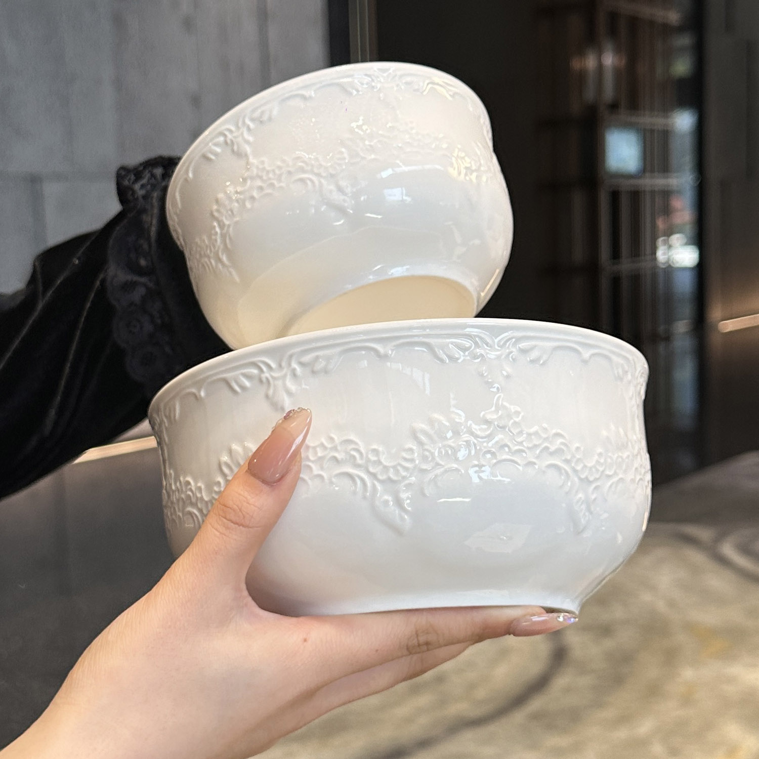 フランスのレトロなヘビーデューティーの美しいレリーフセラミックボウルライス朝食サラダヌードルボウル