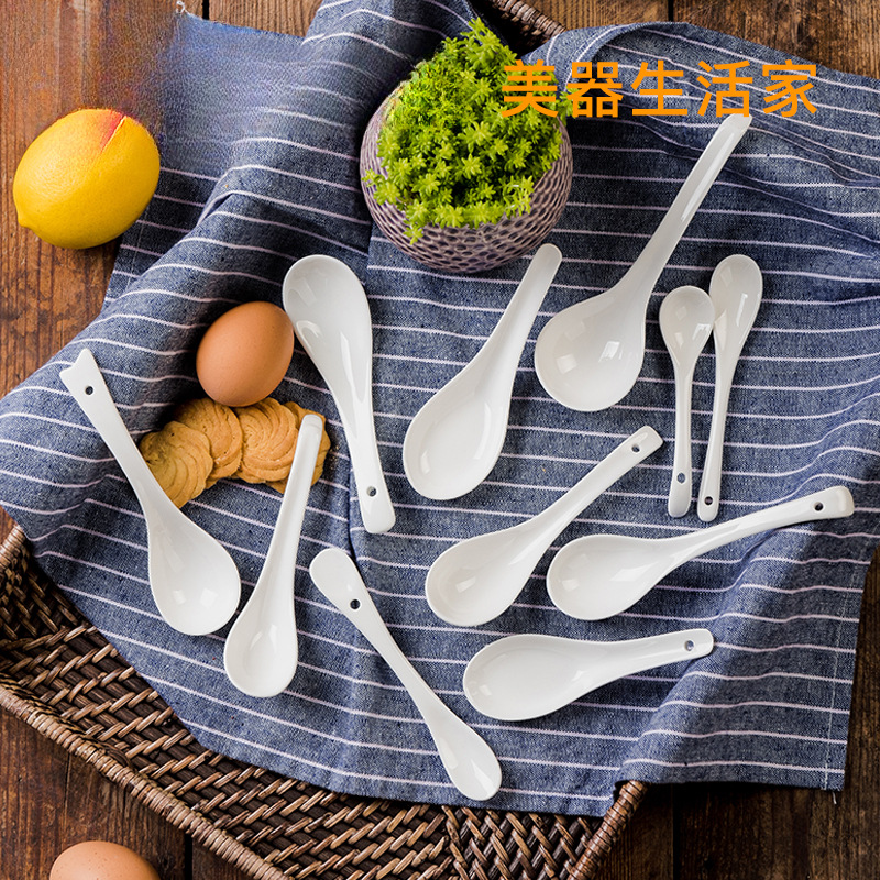 ボーンチャイナの小さなスプーン、家庭用クリエイティブな純白のセラミックの長いハンドルのコーヒースプーン、中型スプーン、大きなスプーン、小さなライススプーン