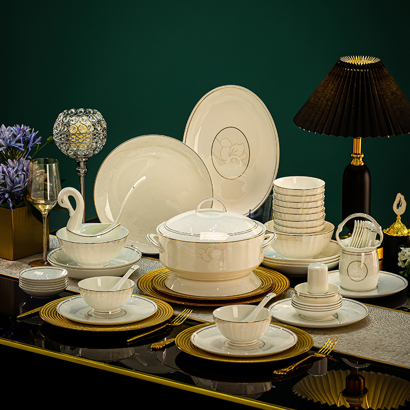 2025 新しい食器セットホームライト高級景徳鎮ボーンチャイナ食器セット感新築祝い結婚祝い