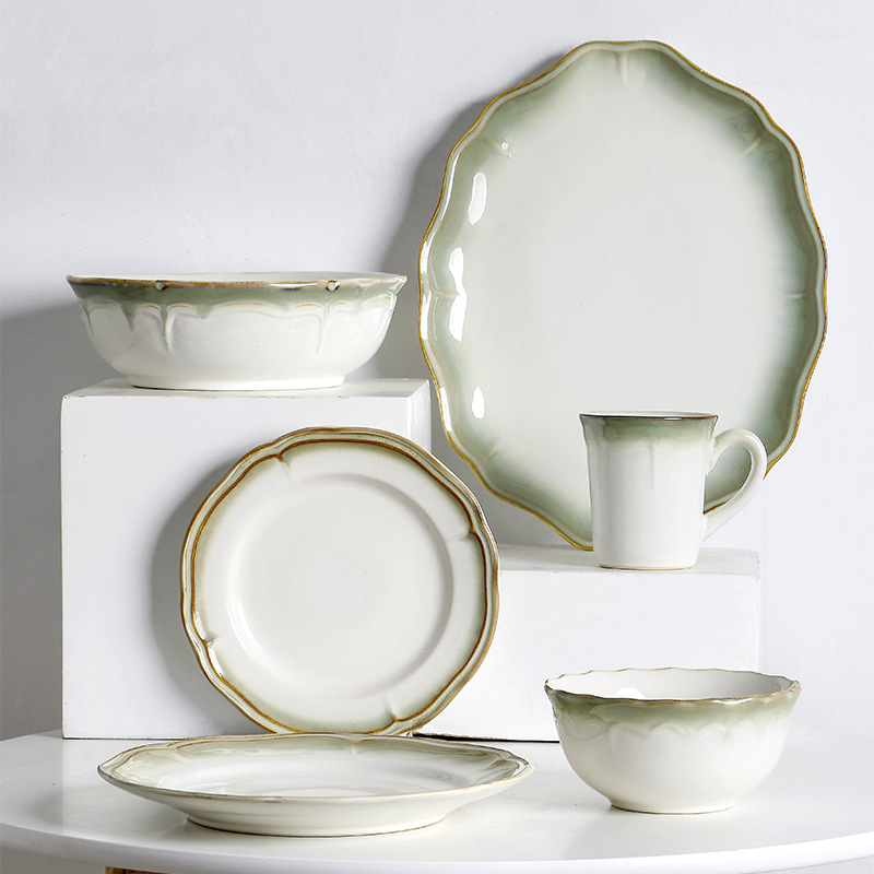 ヨーロッパの貿易セラミックプレート不規則な洋食プレートエンボスフラットプレート家庭用レトロ大型トレイ魚プレート