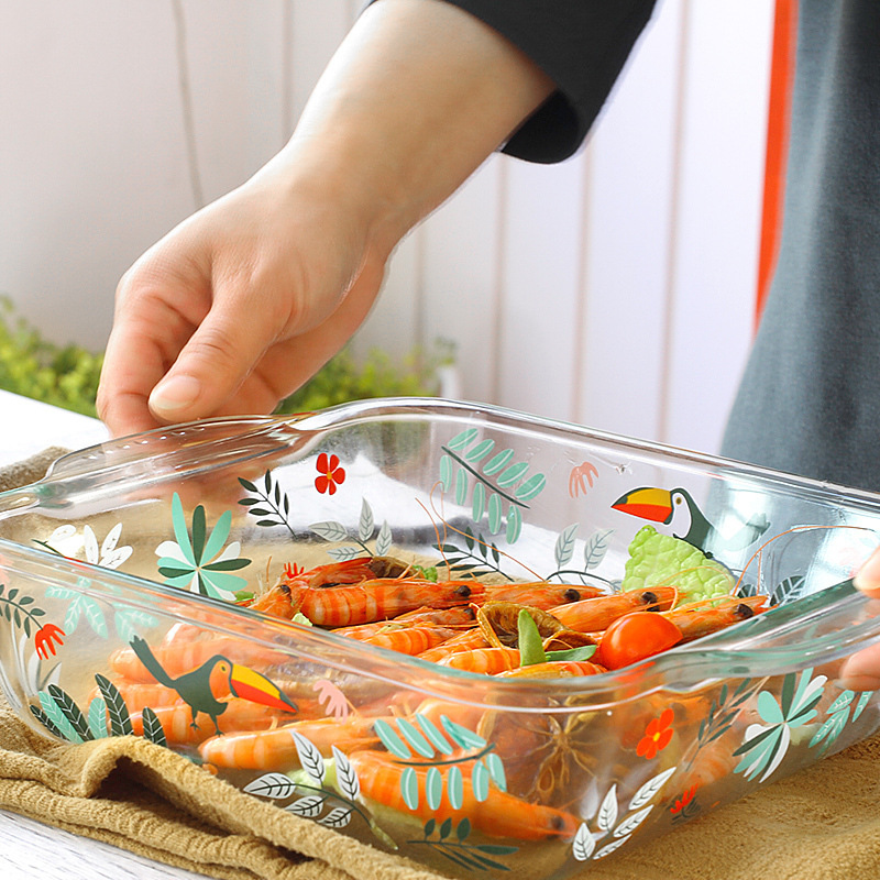オオハシ厚みのある大型ガラスベーキングトレイ電子レンジ家庭用耐熱両耳ベーキングライスプレート
