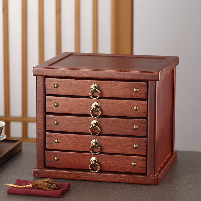 花梨木プーアル収納ケース実木茶餅ケース多層引き出し式茶箱茶葉収納家庭用保存茶箱