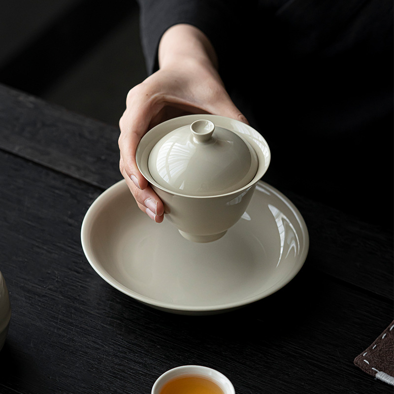 草木祠の草木灰壺は陶磁器の円形のお茶を受けて、お茶のトレーを受けます。