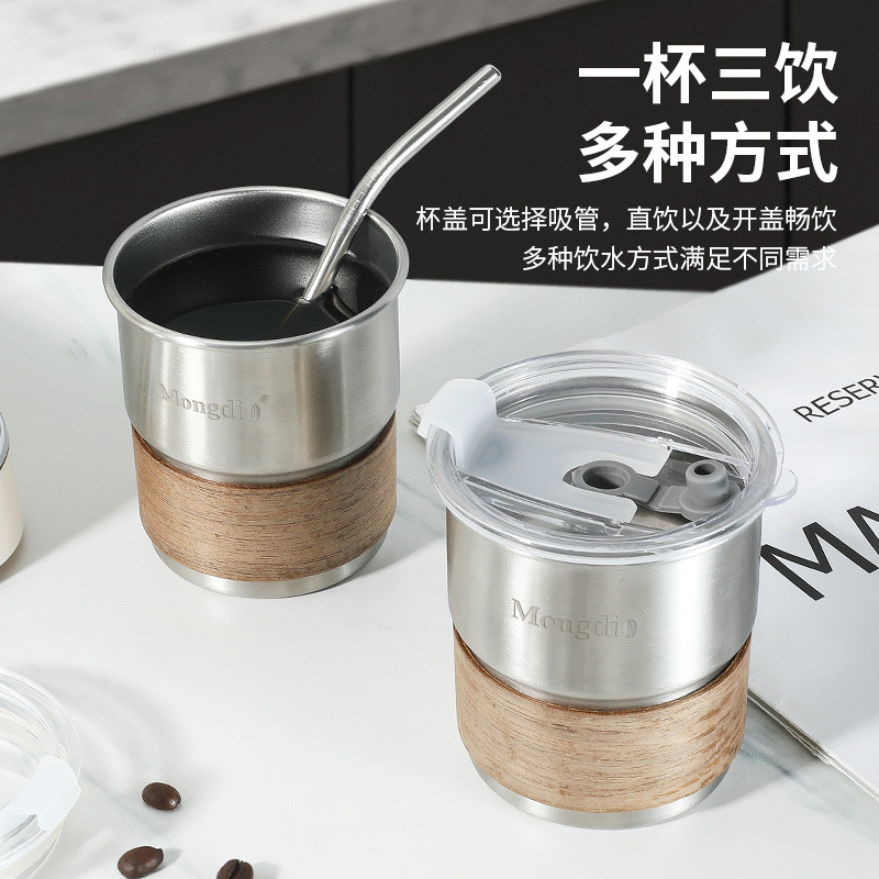 ステンレス鋼のコーヒーカップアイスアメリカン随行カップオフィスラテカップ携帯ストローコップ