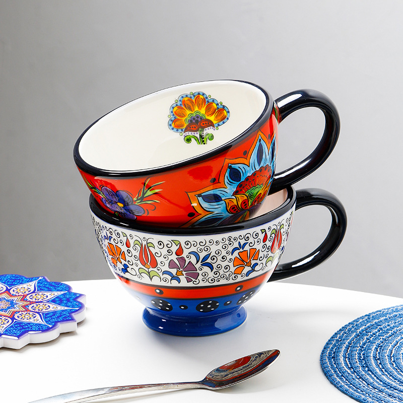 欧米のお客さんのマグカップの大きいサイズの牛乳のオート麦の杯のヨーロッパ式の陶磁器の家庭用朝食の杯の小さい清新な手描きのコーヒーの杯