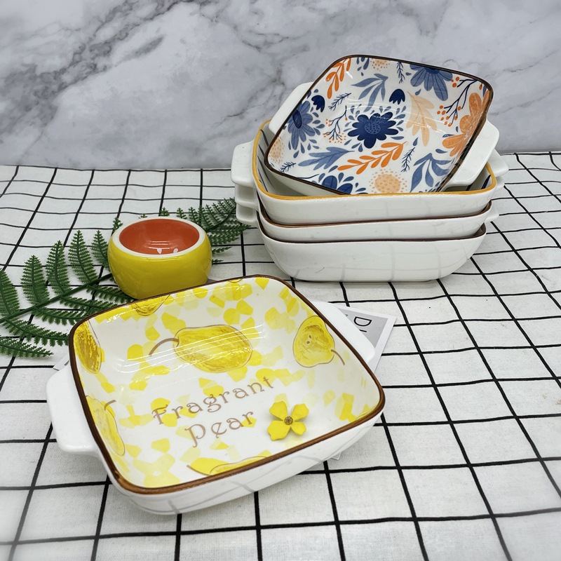 空気フライヤー焼き碗陶磁器双耳碗チーズグラタン焼き皿サラダ碗果物碗漫画正方形焼き皿