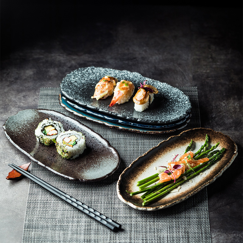 創意の不規則な陶磁器の皿の日本式の魚の皿の寿司の皿のレストランの食器の餃子の平盤の肉の皿の料理の皿
