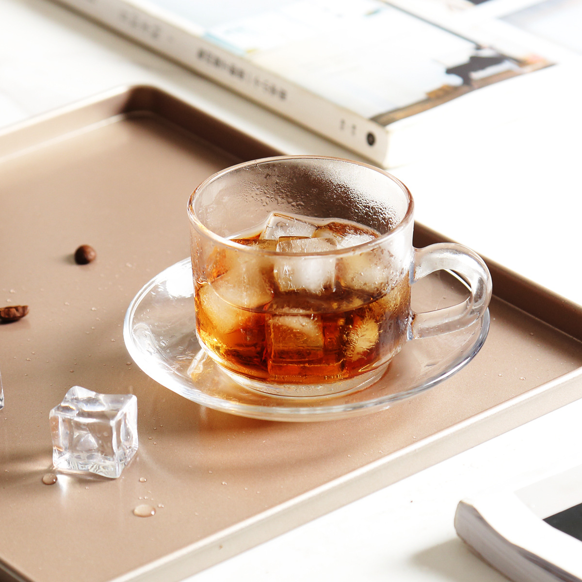 Ins風ガラスコーヒーカップ皿セットヨーロッパ風モカラテラテ透明カップ午後ティーカップはスプーンを厚くして送る