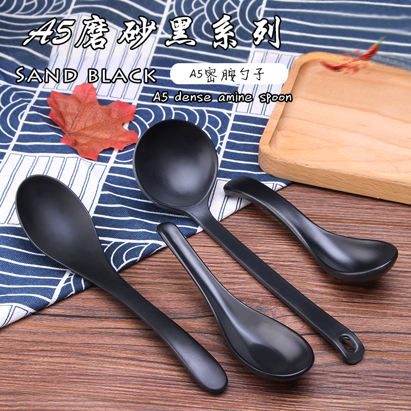 A5フロスト黒メラミンスプーンプラスチックスプーン長柄商用家庭用麻辣热レストラン模造磁器スプーン