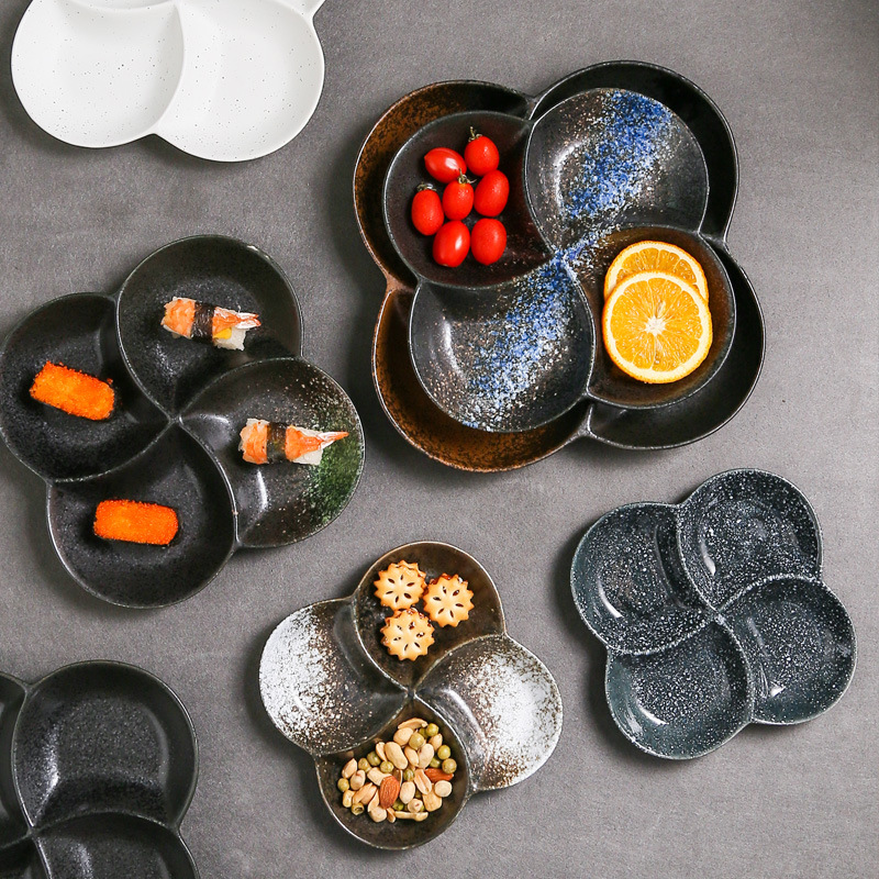日本式家庭用創意陶磁器分格皿四格分食皿おかず皿仕切りデザート皿朝食皿