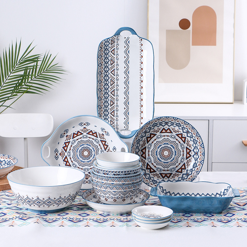 陶磁器の食器の茶碗の皿の焼き皿の双耳の皿のサラダの碗の大きいスープの碗の皿の異国の風情