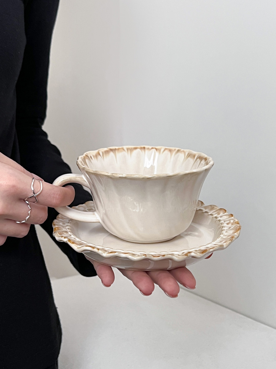 レトロライトブラウンレーススカート釉薬下彩陶磁器コーヒーカップ家庭用高颜値午後カップ