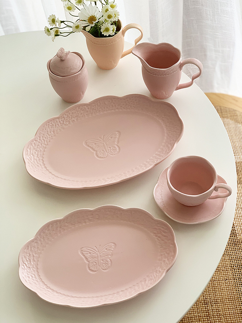 輸出注文insフランス蝶レースマカロンマット高温セラミック食器セット