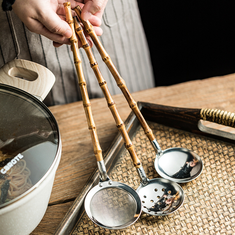 竹の節のスプーンのステンレスのスプーンの長い柄のスプーンは熱を防ぎます。