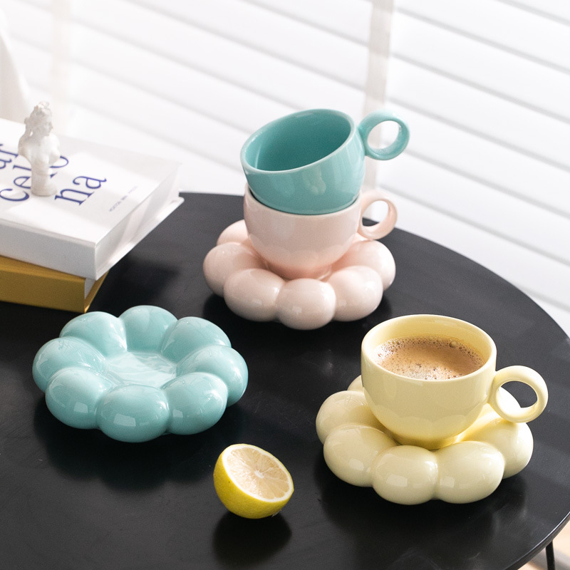 花陶磁器insカップ皿かわいい朝食コーヒーカップマグカップ韓国式ネット赤創意色釉薬下彩