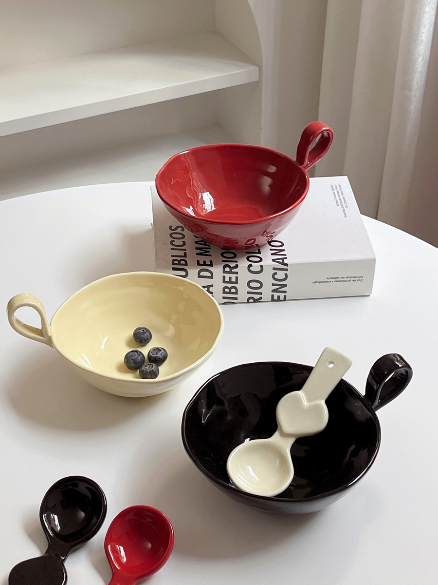 甘いクールなデザインの陶磁器オート麦ボウルスプーン付き片耳ヨーグルトボウル果物サラダボウル朝食ボウル