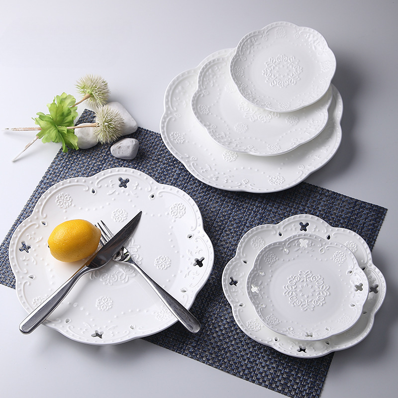 ヨーロッパ式レリーフ陶磁器レース菓子皿円盤平皿パスタ皿果物皿菓子皿焙煎料理皿
