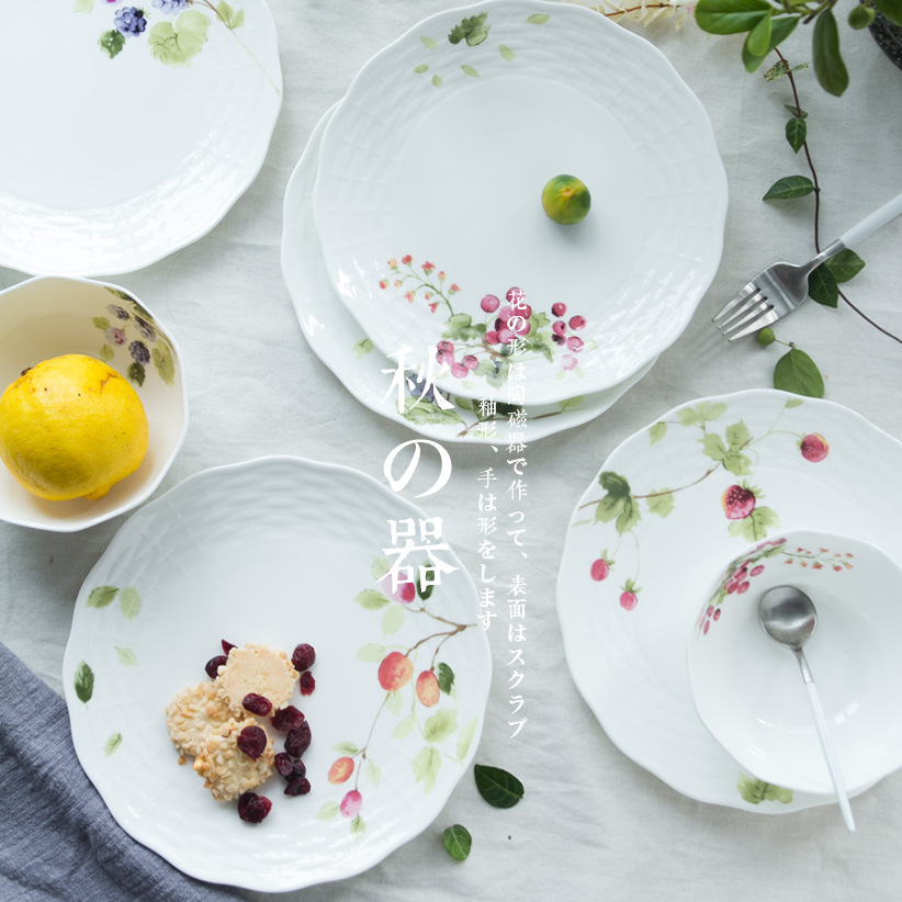 日本式の秋の実の席の紋様の皿の田園の朝食の料理の皿のレリーフの陶磁器のステーキの皿のアイデアの骨の磁器のパスタの平らな皿