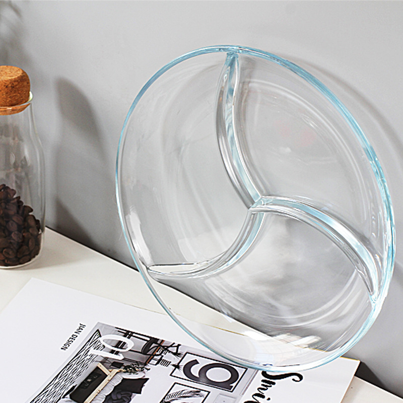 強化ガラス三段の簡単な食事の皿とおかずの皿朝食の果物のサラダの皿はデザートのお菓子の皿を分けます。